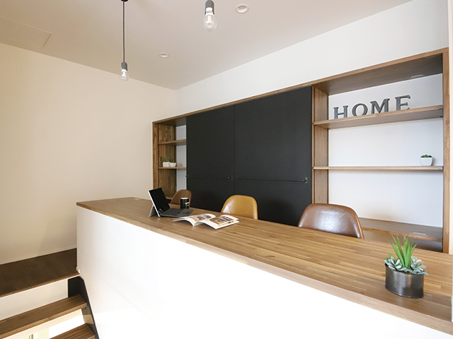 階段を登った先にはワークスペースを。ちょっとした仕事や勉強を家族の様子を眺めながら行うことができる。