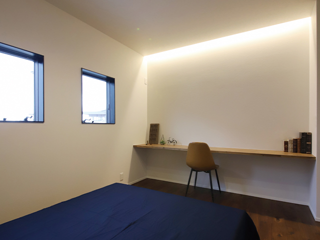 寝室にもワークスペースを作り、一人で集中できるプライベートな空間も確保。