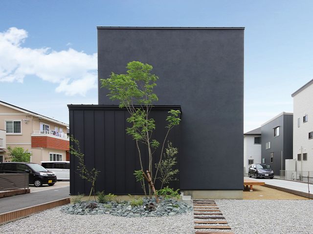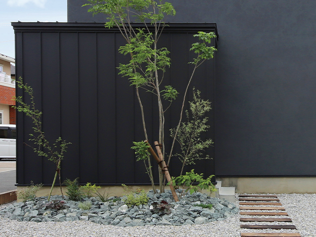 ブラックにシンボルツリーのグリーンをアクセントに。