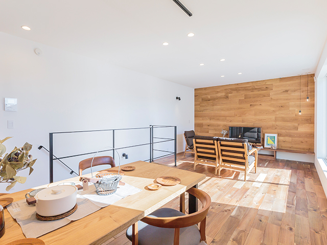 ナチュラルテイストの2階リビングで心地よく過ごす内観