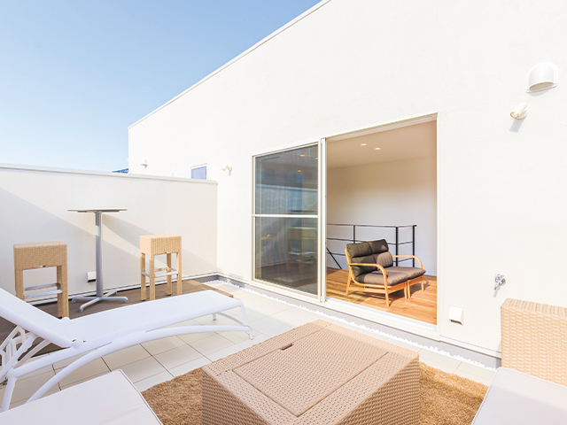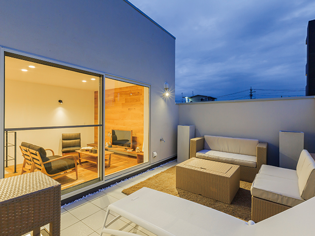 外からの視線を遮る設計で、安心してくつろげるプライベート空間を提供。夜には星を眺めながらお酒を楽しむこともできる。
