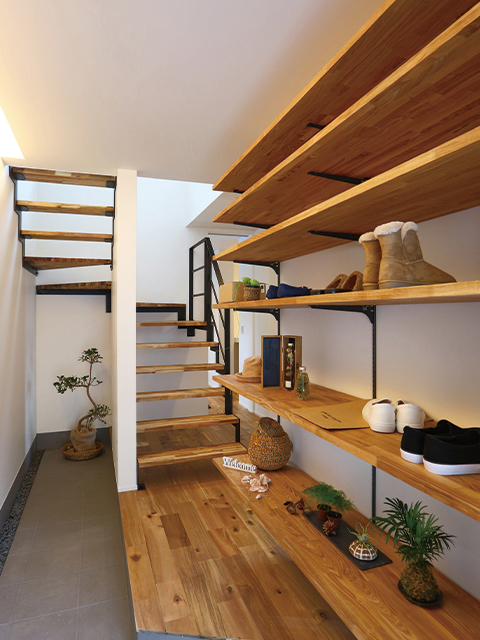 シャープに際立つ、グレーの美学で洗練された住まい 静けさと上質感が漂う玄関まわり 静かに迎え入れる、上質なグレーが印象的なミニマル玄関。 無機質な美しさに木のぬくもりが映える、上質なモダンファサード。 木の温もりに包まれる暮らし 木の温もりと自然光に包まれた、家族の会話が弾むキッチン空間。 抜け感のある階段と木の棚が、心地よい玄関動線を演出する空間。 空とつながる天窓テラスで、心ほどけるリラックスタイムを楽しむ空間。 動線上に心地よく溶け込む収納棚が、暮らしに整う美しさをもたらす空間。 木のぬくもりと白の清潔感が調和する、心落ち着く洗面スペース。 やわらかな光と木の質感に包まれた、心ほどけるナチュラルリビング。 一覧へ 前へ 次へ