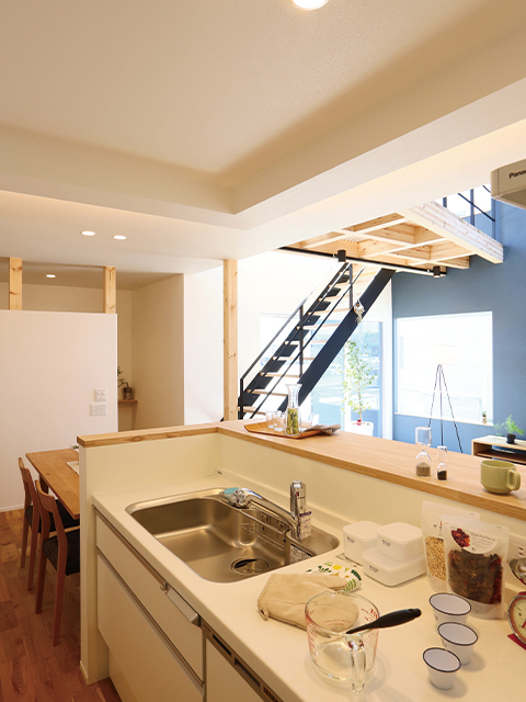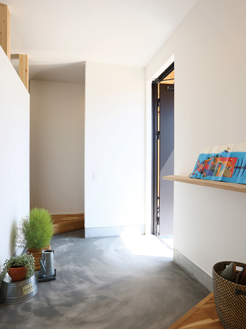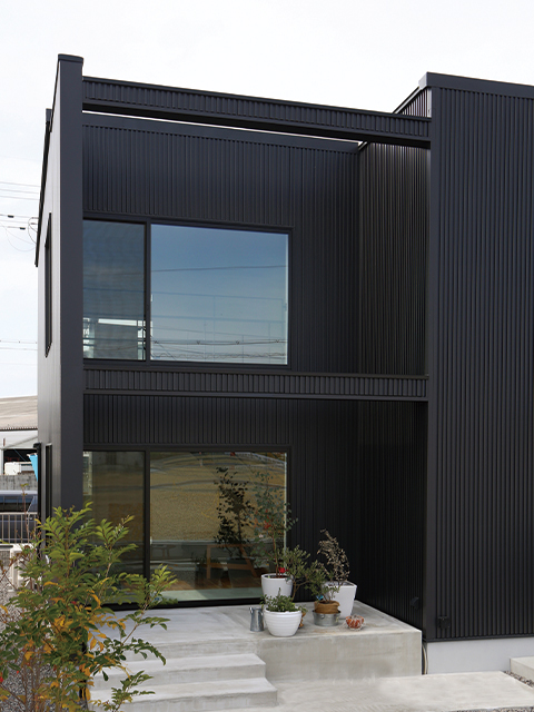 漆黒が映える、無骨で美しい佇まい 黒と木が織りなす、空と調和する美しい外観 直線美が際立つ黒の外観に、植栽と白鉢がやさしく調和するエントランス。 深いブラックに木の軒天が映える、空に溶け込むような美しいファサード。 光と木のぬくもりに包まれた心地よい住まい 陽の光が床に描く模様。シンプルな空間に木の温もりと陰影が交差し、心がほどけていく。 青のアクセントが映える空間。無骨なスチール階段と木の格子天井が心地よく調和する。 土間に射す自然光と植物の緑。外と中をゆるやかにつなぐ余白が、暮らしの始まりを整える。 食の風景が広がる場所。キッチンに立つ時間も、家族の気配を感じる心地よいひととき。 ラフで素朴な造作棚。素材のままの木肌が、暮らしの気配と共に経年の美しさを刻んでいく。 光と風が抜ける空中回廊。家の中を緩やかにつなぐ動線が、暮らしにリズムと遊び心を添える。 一覧へ 前へ 次へ