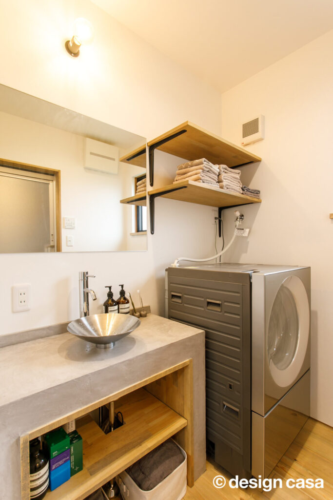 使いやすさと美しさを兼ね備えた洗面室。素材の温もりと無駄のない収納設計が、日常をすっきり整えてくれる。