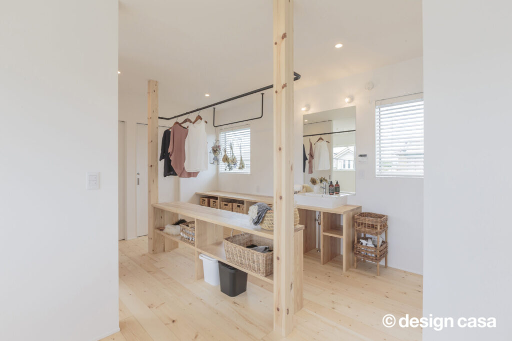 暮らしの動線を美しく整えるユーティリティ空間。洗う・干す・仕舞うを一筆で描く、合理と心地よさの同居。