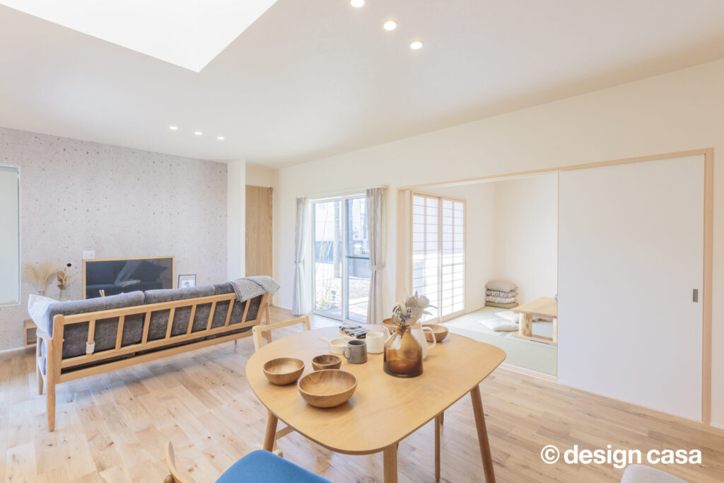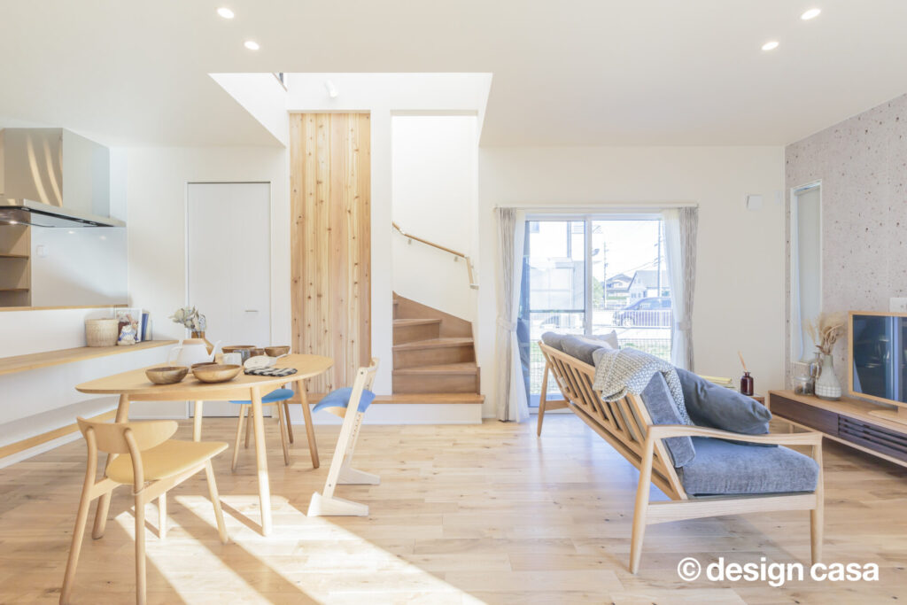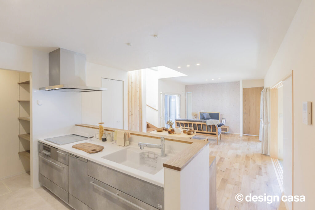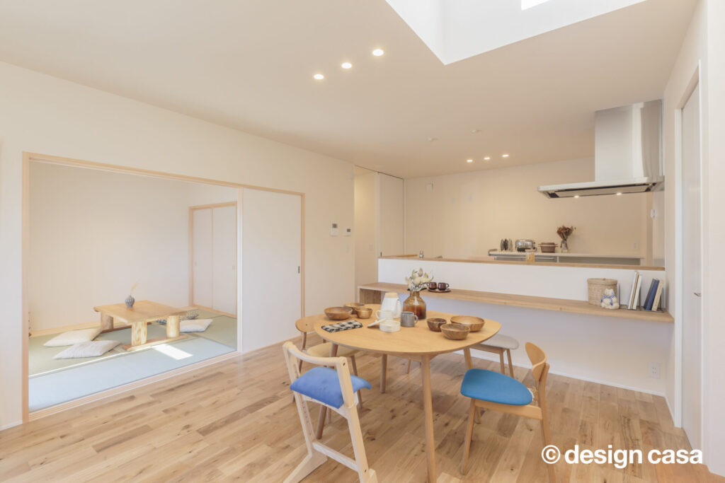 静寂をまとう黒の家 陰影が美を深める家 木の格子が美しく陰影をつくるアプローチ。プライバシーを守りつつ、光と風をやさしく迎える設計。 シャープな黒の外壁と、木格子のアクセントが映えるファサード。街並みに静かに個性を刻む一邸。 光と木が奏でる空間 清潔感あふれる白とネイビーのコントラスト。木の棚とグリーンが、空間にやさしい温もりを添える。 吹き抜けから光が注ぎ、家族の会話が弾むダイニング。木の階段が暮らしに優しいアクセントを加える。 対面式キッチンから見渡す開放的なリビング。家族との時間をつなぐ、機能とデザインの両立空間。 木の質感が際立つ、明るく柔らかな空間。陽の光に包まれて、心地よい時間がゆっくり流れる。 障子の奥に広がるやさしい和の空間。リビングとのつながりが、日常に落ち着きと温もりを与える。 畳の香りと木のぬくもりが溶け合う空間。キッチンとひと続きの設計が、暮らしをもっと快適に整える。 一覧へ 前へ